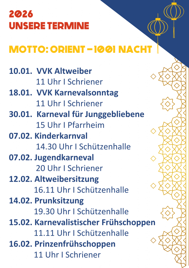 Wir freuen uns schon sehr auf Karneval 2026. Alle wichtigen Termine findet ihr hier: